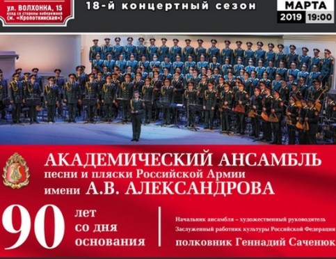 It is named for its first director, Alexander Vasilyevich Alexandrov (1883–1946). Its formal name since 1998 has been A. V. Alexandrov Academic Song and Dance Ensemble of the Russian Army (Russian: Академи́ческий анса́мбль пе́сни и пля́ски Росси́йской А́рмии и́мени А. В. Алекса́ндрова, tr. Akademíchesky ansámbl′ pésni i plyáski Rossýskoy Ármii ímeni A. V. Aleksándrova),[2] shortened to Academic Ensemble (Russian: Академи́ческий анса́мбль, tr. Akademíchesky ansámbl′)[2] on second reference.