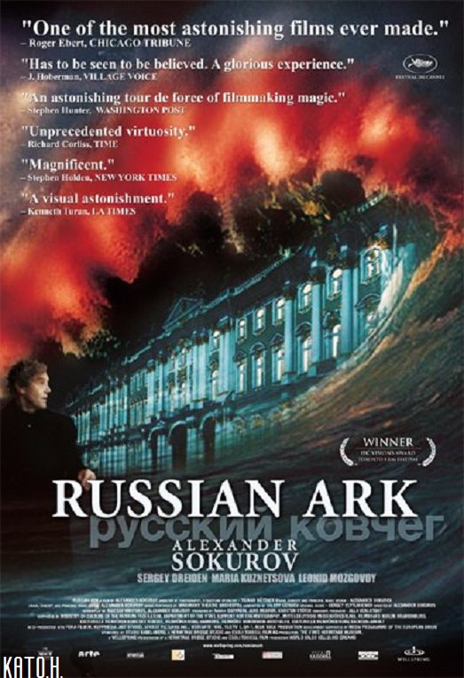 Russian Ark (Russian: Русский ковчег, Russkij Kovcheg) is a 2002 experimental historical drama film directed by Alexander Sokurov. It was filmed entirely in the Winter Palace of the Russian State Hermitage Museum on 23 December 2001 using a one-take single 96-minute Steadicam sequence shot. The film was entered into the 2002 Cannes Film Festival.[2]