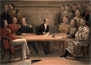 南京條約》(英語:Treaty of Nanking]),又稱《江寧條約》,大清朝廷稱之為「萬年和約」],是大清首個因對歐美國家戰敗而簽之條約。滿清道光二十二年(1842年),大清在對英國的第一次鴉片戰爭中戰敗。雙方代表在南京靜海寺談判並在泊於南京下關江面的英軍旗艦汗華囇號上簽署《南京條約》,以確切文件達成開放通商,並且大清向英國割讓香港島。