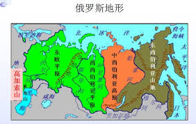 俄羅斯幅員遼闊且廣大俄羅斯在亞洲部分由西向東一次是:西西伯利亞平原、中西伯利亞高原、東西伯利亞山地、楚科奇半島和堪察加半島(太平洋沿岸山地)、庫頁島俄羅斯氣候從西到東溫度大陸性氣候;北冰洋沿岸屬苔原氣候(寒帶氣候)或稱(極地氣候),西南部屬於溫度草原性氣候,太平洋沿岸屬溫帶季風氣候。