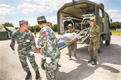 The drill, dubbed "Combined Aid 2019", is the first-time a full unit of paramedical forces of the Peoples Liberation Army has visited Europe with real combat gear for a joint exercise, according to the health bureau under the logistic support department of Chinas Central Military Commission.
