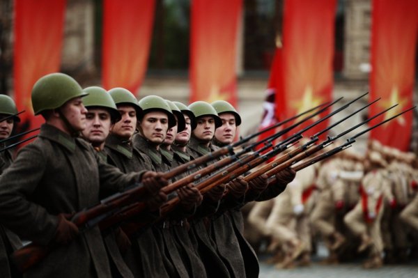 俄羅斯克里姆林宮當局,紀念19411107紅場誓師抵抗納粹黨德軍的入侵,規模愈來愈小,參加的人數僅維持1000餘人左右,必竟蘇聯共產黨已經解體,紅軍也解散部隊番號及編制,僅每年紀念日之時才由,中簽的年輕軍校中學生組團參加,他們身穿第二次世界大戰時的軍服及持有步槍等武器,口中高唱莫斯科保衛者進行曲,彷彿時光又回到19411107.普京近年來因故都未曾出席紀念日活動,而由俄羅斯軍方高層人士舉行紀念日活動.如今俄羅斯頭號敵人變成美國人,如果第3次世界大戰爆發,當美軍進攻俄羅斯首都莫斯科,紅軍們依舊會高唱莫斯科保衛者進行曲,奮戰不懈的抵抗美軍,打敗美國帝國主義.