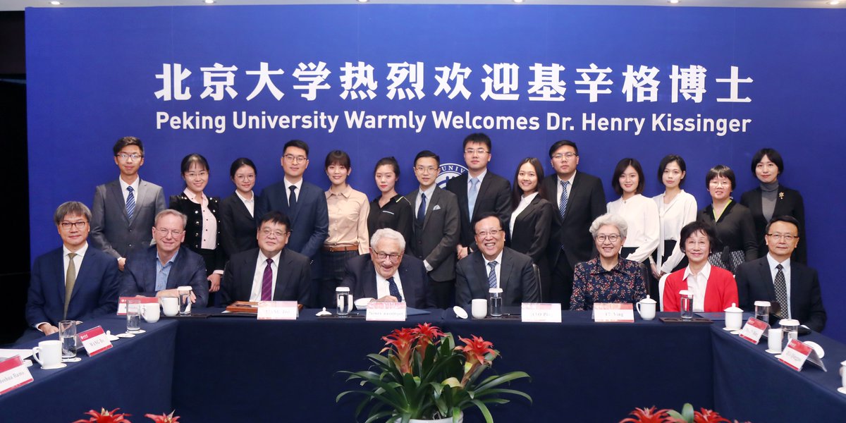 20191126.HK.他與北京大學國際關係研究所師生座談會,會後合影留念,傳聞他要求北京大學調派數名學生,協助他支援他,蒐集資料,整理資料,撰寫回憶錄HK.往來中國已經將近50個年頭,他是北京大學的常客,有專用辦公室給他使用.傳聞只要是得到HK.親筆的推薦信的學生,在升學或是就業,都有好的結果,筆者朋友的兒子,業已獲准哈佛大學費正清國際關係研究所,入學許可證及獎學金202003春季班,他就要赴美國功讀博士學位.北京大學的校園內,曾經埋葬些外籍人士,他們都是支持中國政府及中國共產黨的知名烈士,HK.曾經自我解潮表示,他死後也希望埋葬於北京大學校園內?