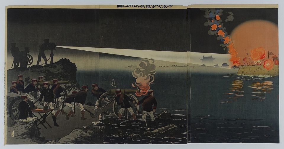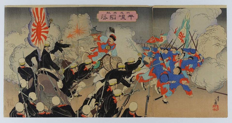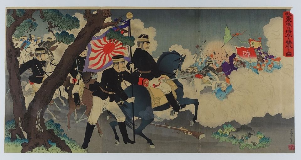 1894年初,朝鮮爆發東學黨之亂。至該年中,清廷應朝鮮政府之請出兵當地。日本聞訊亦向朝鮮增兵,繼而於7月末攻入朝鮮王宮,擁立親日的大院君政權,並先後於豐島對出海面和成歡進襲入朝清軍,決心將清廷勢力徹底逐出朝鮮。清廷百般無奈下,終在8月1日對日宣戰。