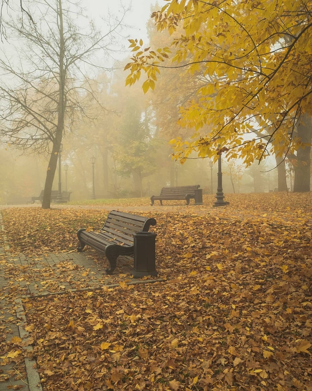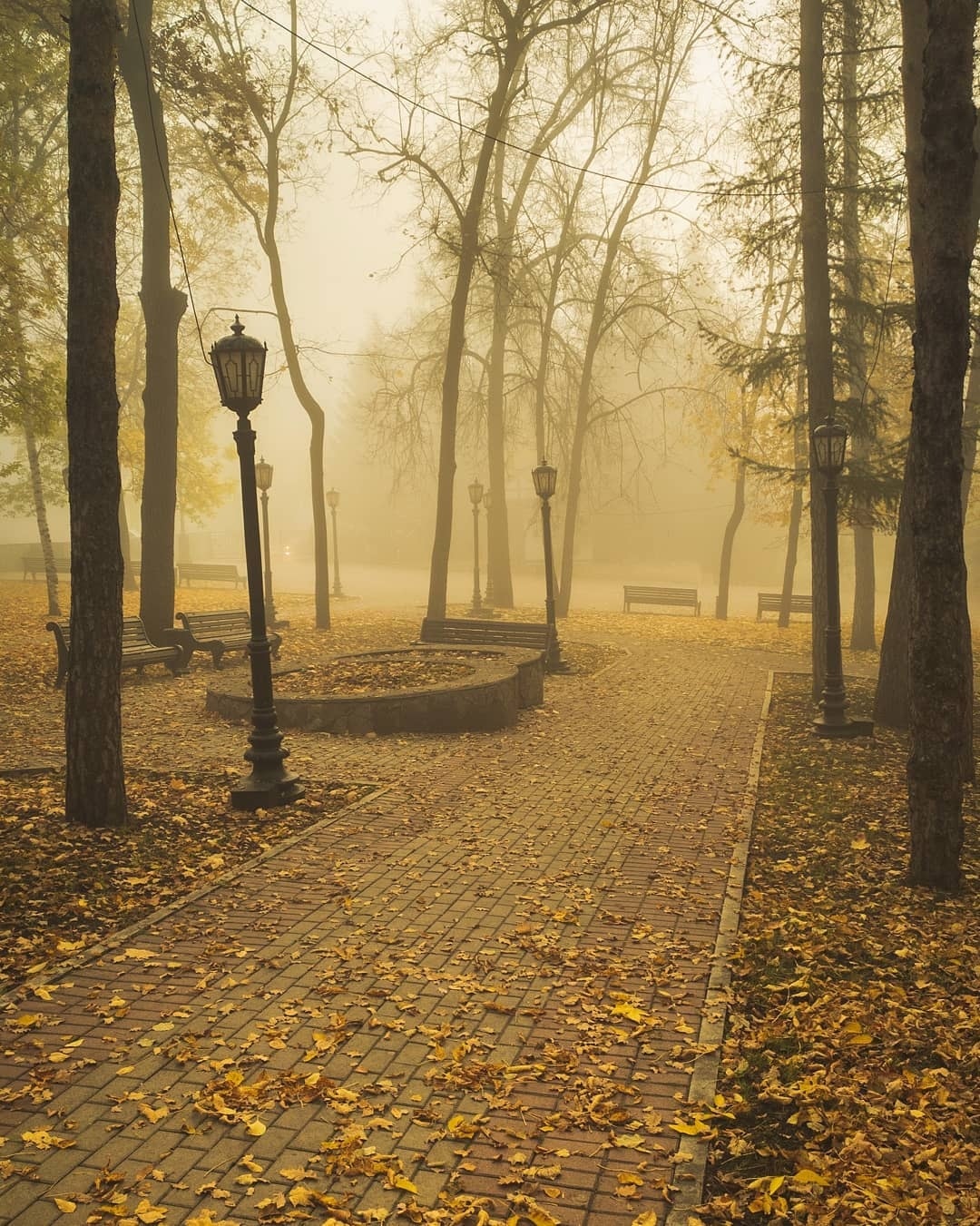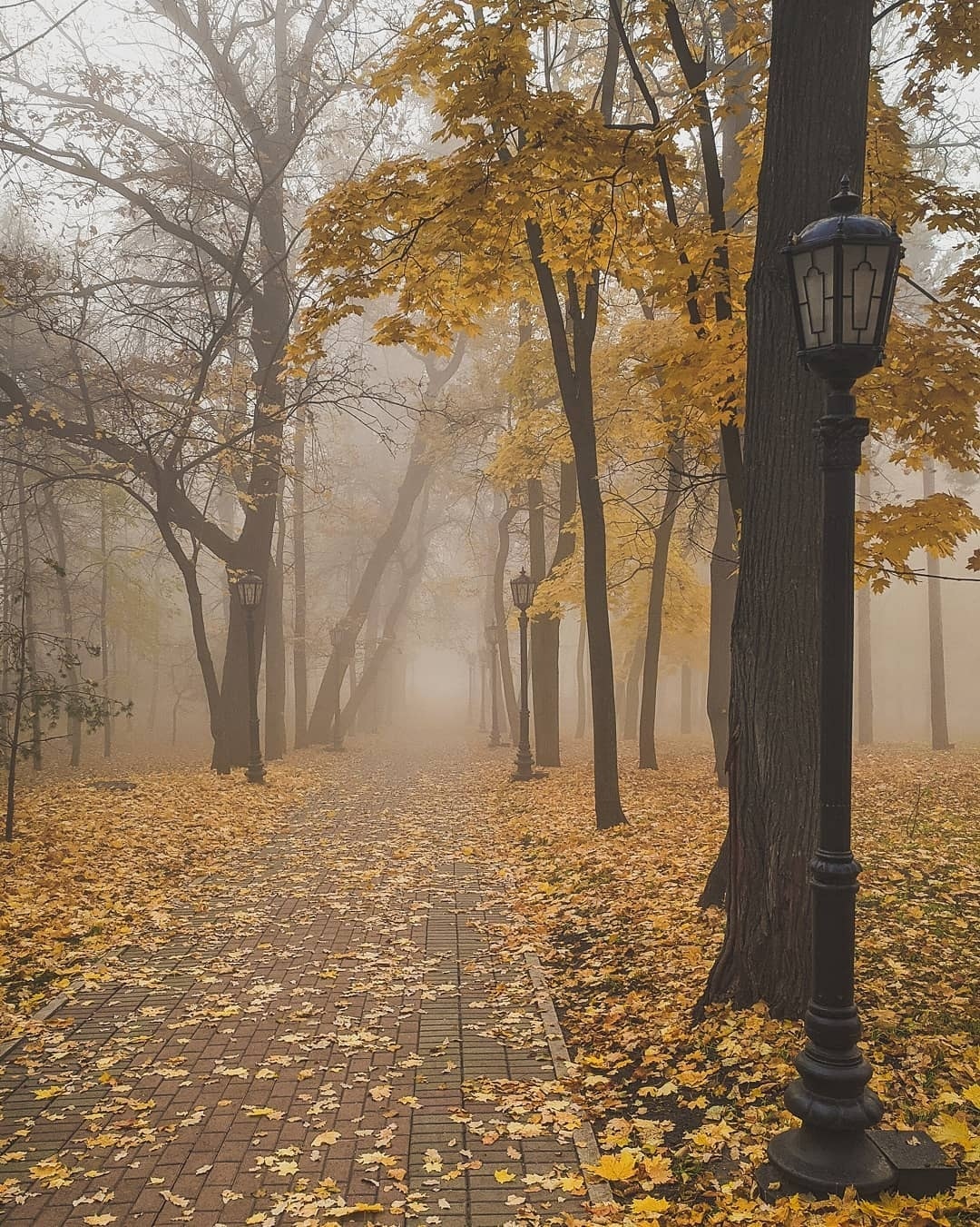 20201001.聖彼得堡深秋季節降臨,普錫金公園內的樹木葉片枯黃,隨風飄散,黃昏時候薄霧輕起,唯有筆者1人,獨自敞佯其間,體驗深秋時節的寧靜,樹葉挑飄落,微風吹彿,好像時間與空間再度停止,氣象預報未來一週,都會降雨,氣溫也會再降低至攝氏8-10度左右,其實深夜裡都有毛毛雨落下.