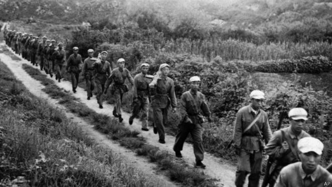1950年冬天走過已結冰的鴨綠江到朝鮮參戰.