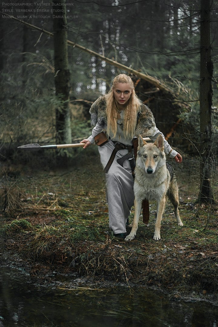 她終日與烏鴉及野狼為伍,徜徉於山林中,溪水畔,漁獵為生,