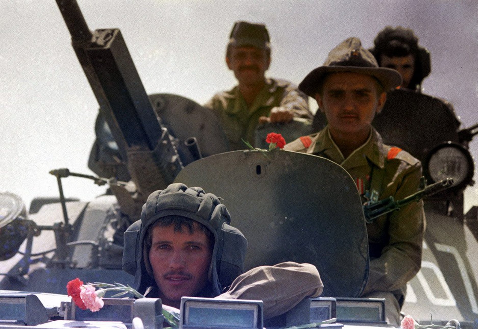 蘇聯軍隊驕傲井然有序自阿富汗撤兵.