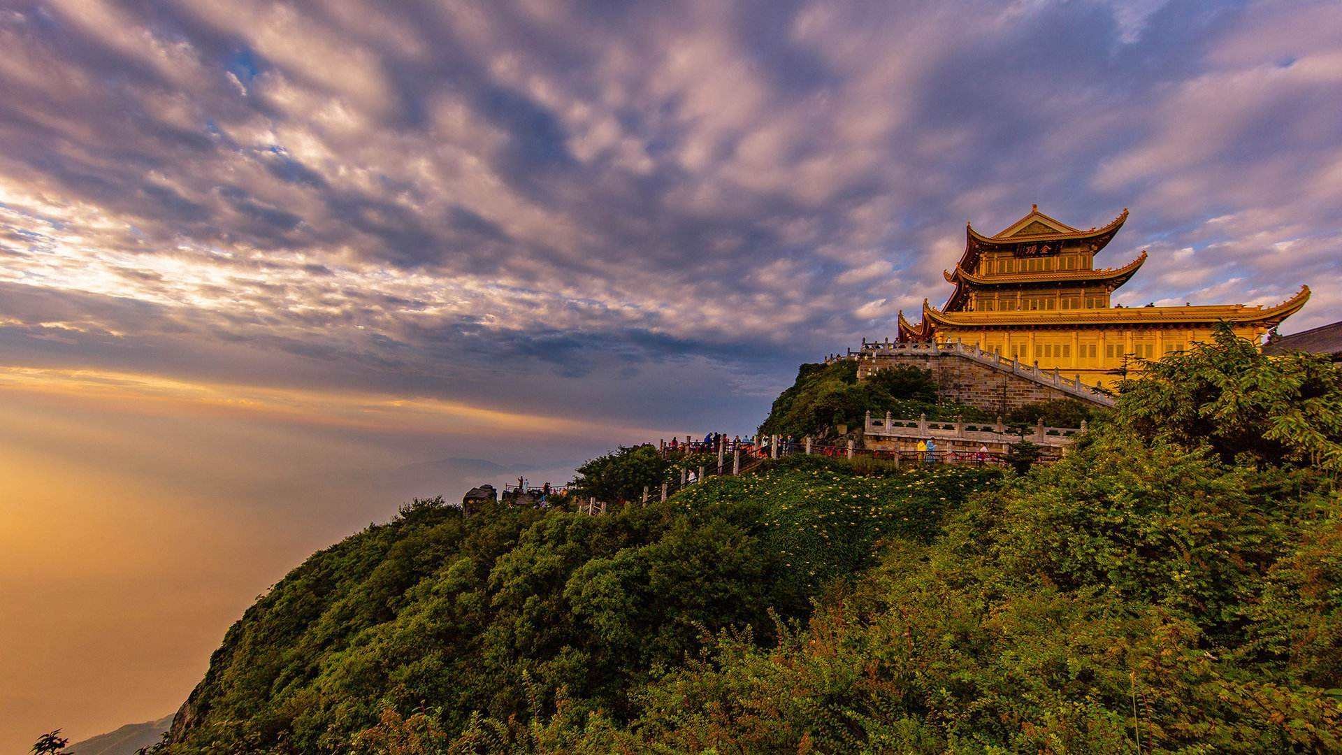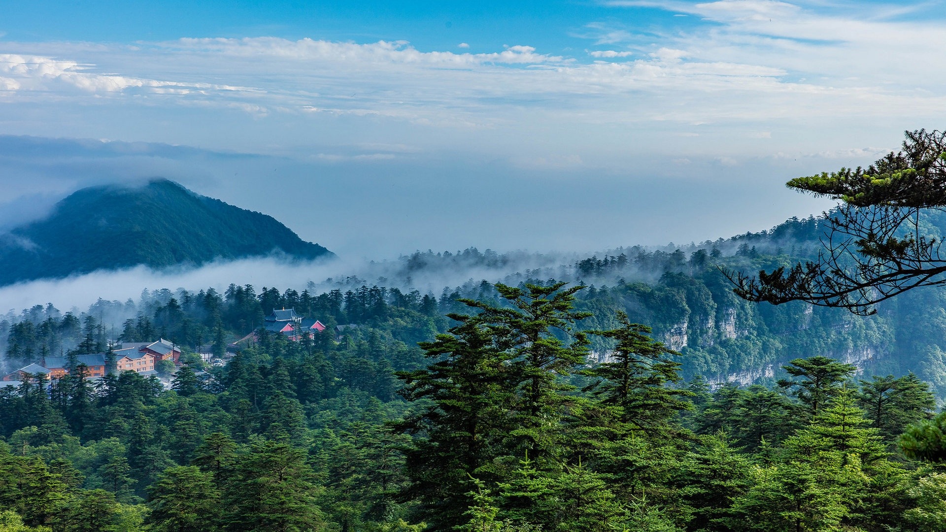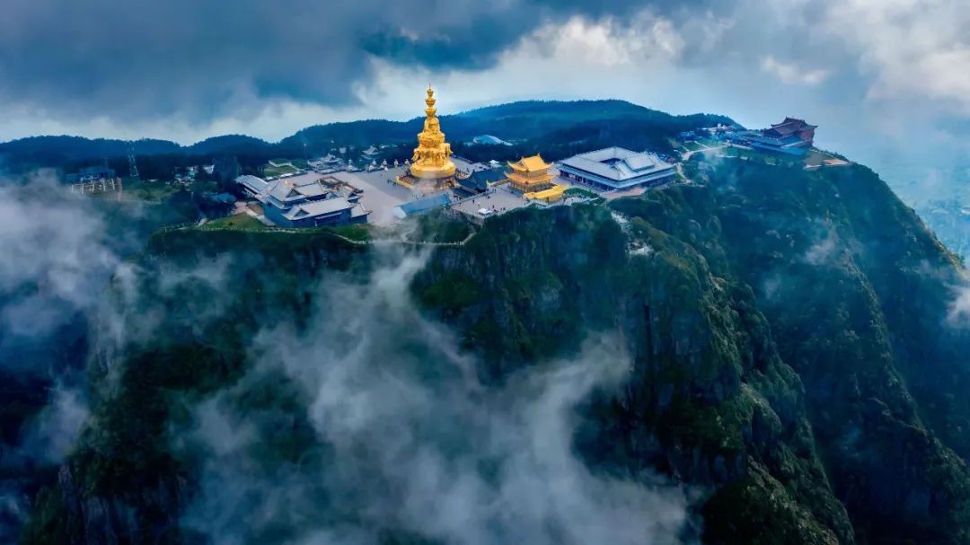 四川峨嵋山金頂夏季風景航空拍攝照片