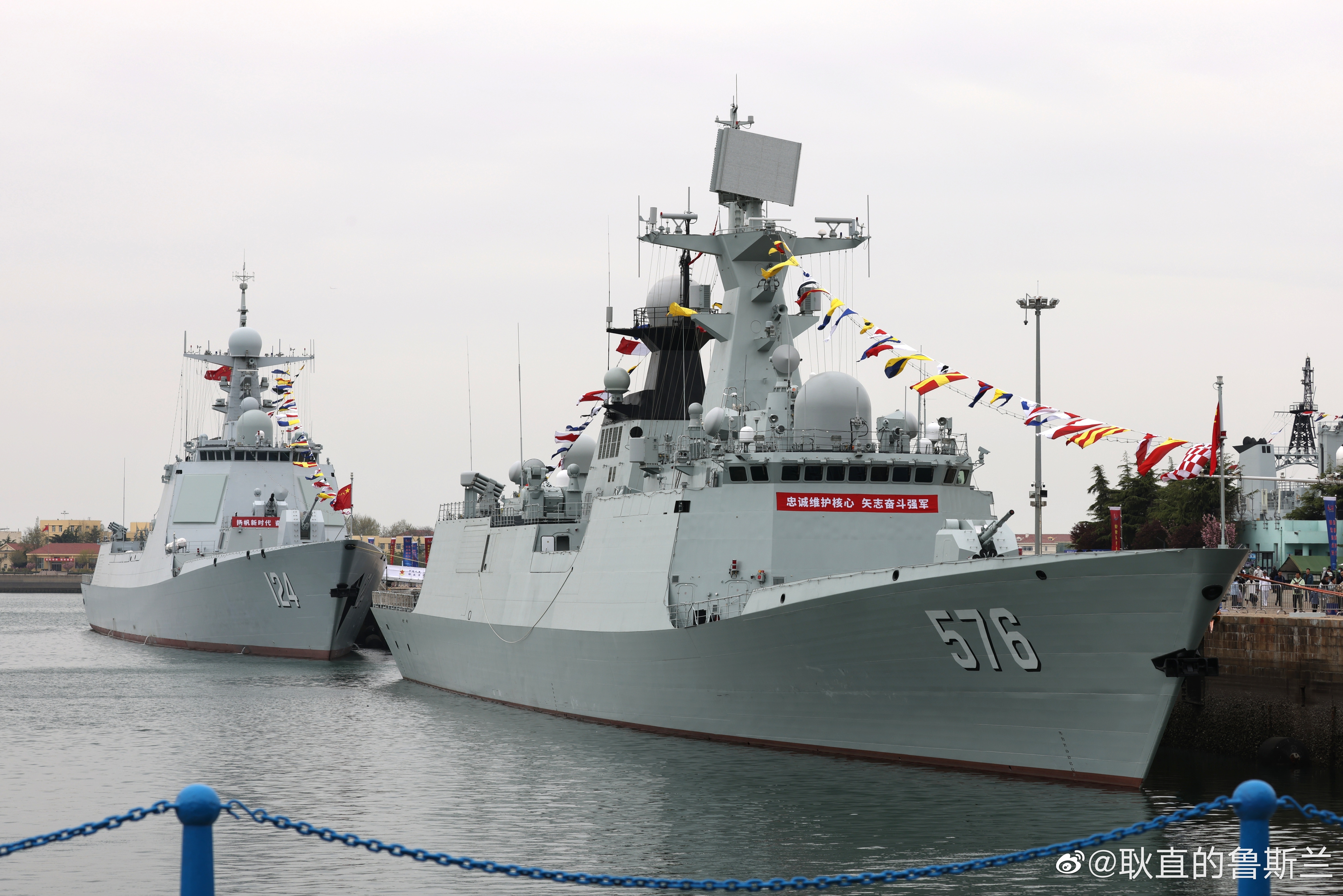 在青島港3號碼頭展示的三艦一船,均為海軍現役的新型戰艦,包括導彈驅逐艦開封艦,導彈護衛艦大慶艦,綜合補給艦可可西里湖艦和綜合援潛救生船洪澤湖船。