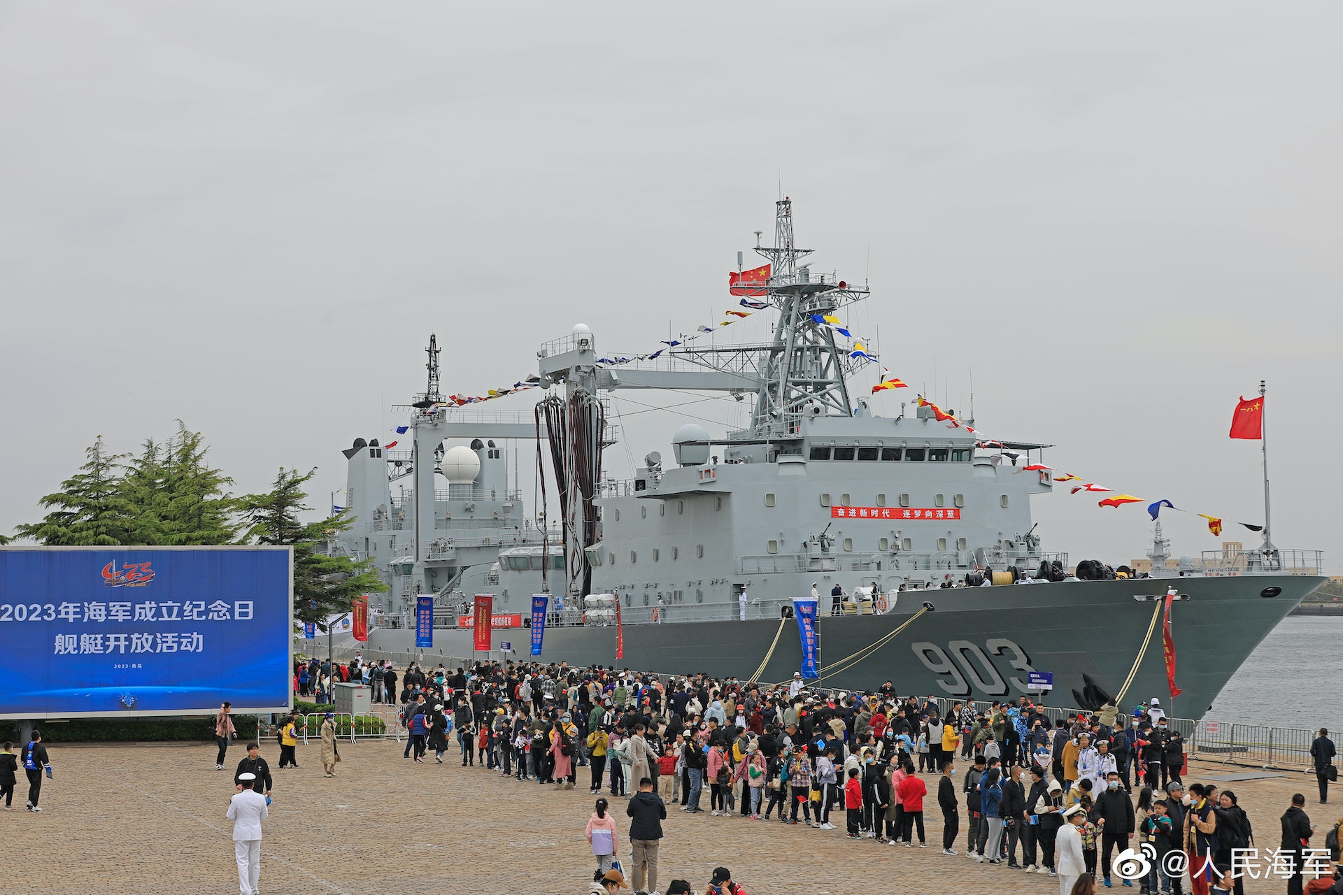 20230422-24日,軍於青島,上海及廣州等22個城市開放軍營予公眾參觀,沿海的軍港碼頭展示多款海軍主戰艦艇,包括導彈驅逐艦開封艦等等。