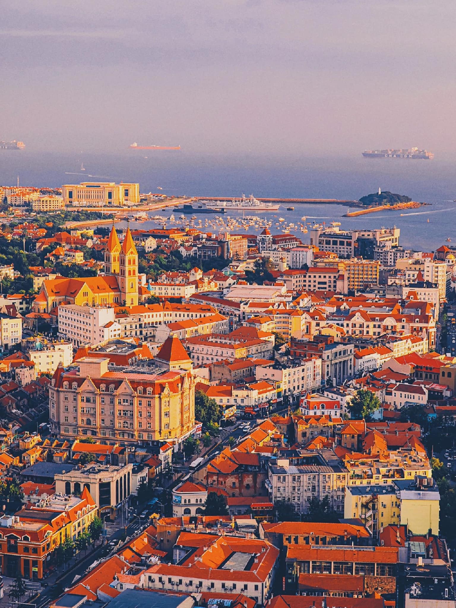 .青島市是德國人依據歐洲都市計畫,建設的現代化城市,依山傍海,風景美麗,四季分明,值得常住.中國海軍北海艦隊司令部於此,照片顯示出有潛艦,導向飛彈護衛艦駐泊,中國第一艘航空母艦遼寧號的母港,在中華民國對日抗戰的時期,美國海軍曾經協助國民黨建立中央海軍訓練團(青島海軍學校),後改變海軍軍官學校,培訓優秀的海軍,同時贈予多艘戰艦打擊日本海軍