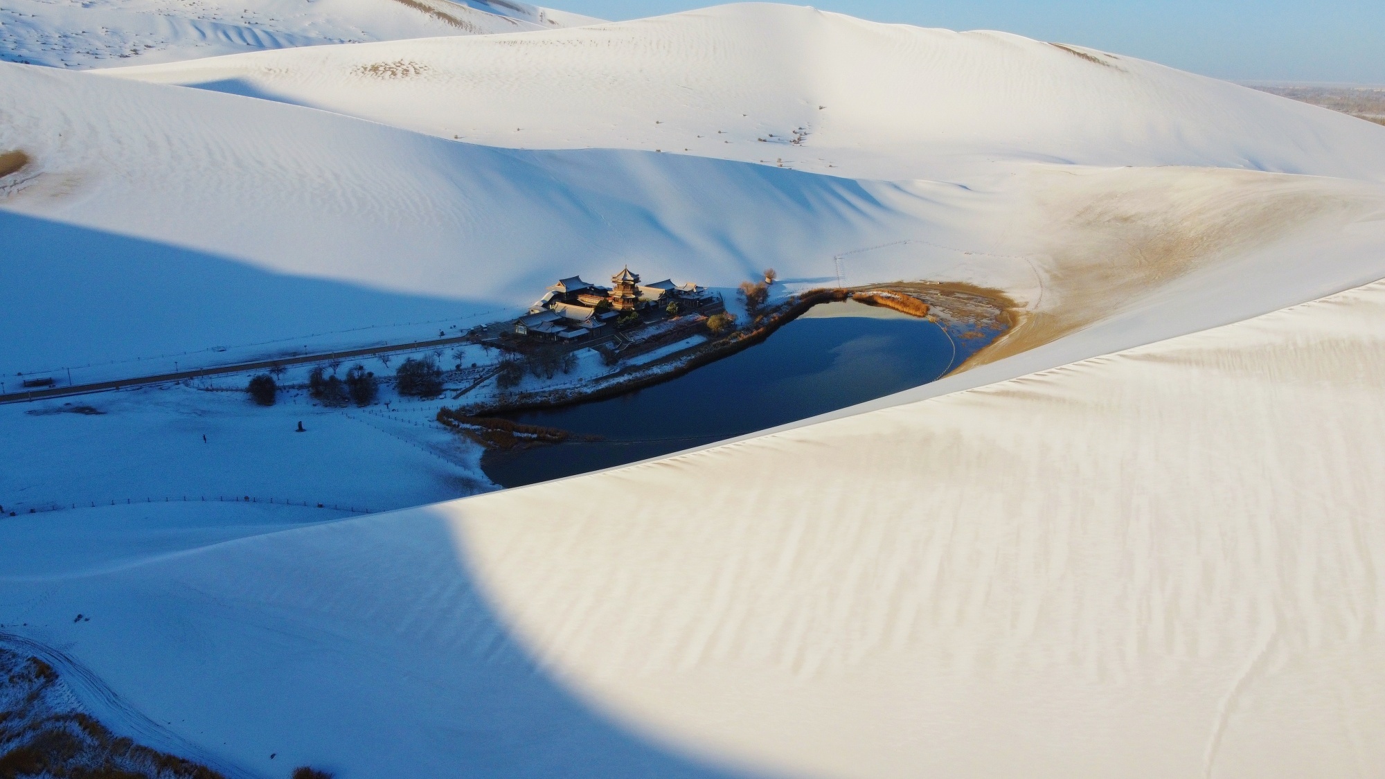 2023.甘肅省月牙泉初冬的雪景