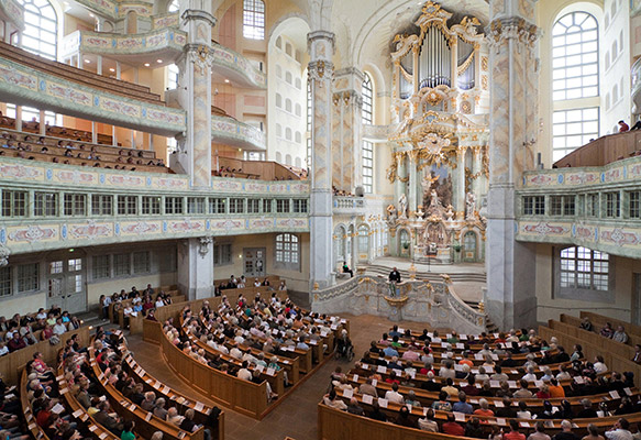 Nicht nur der Bau der Frauenkirche zieht Dresdenreisende in seinen Bann. Auch ihr kirchliches und kulturelles Programm hat viel zu bieten: Dazu gehören zum einen tägliche Gebete und Gottesdienste in beeindruckender Kulisse sowie Kirchenführungen.