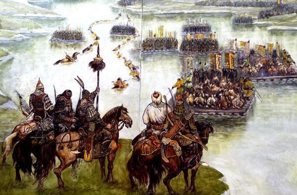 When Jebe and Subutai heard of the Rus movements, they began moving east, away from the Rus, which was the only direction in which they could move. However, they left a rearguard of 1,000 under the command of an officer, Hamabek, to report of the Rus movements and act as bait. Soon, Mstislav the Bold reached the river opposite the rearguard, and it became apparent that no prince had been appointed commander-in-chief. Thus, all the princes could act as they pleased. Eventually, Mstislav crossed the river under heavy arrow fire. When the Rus landed, however, their numbers were too great, and the Mongols were killed to the last man.]