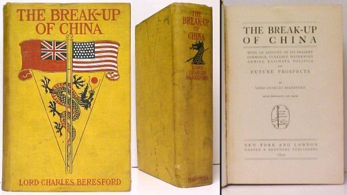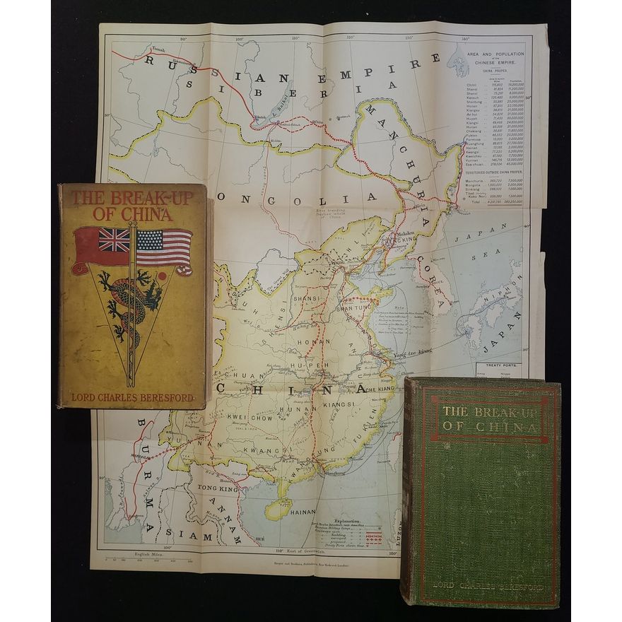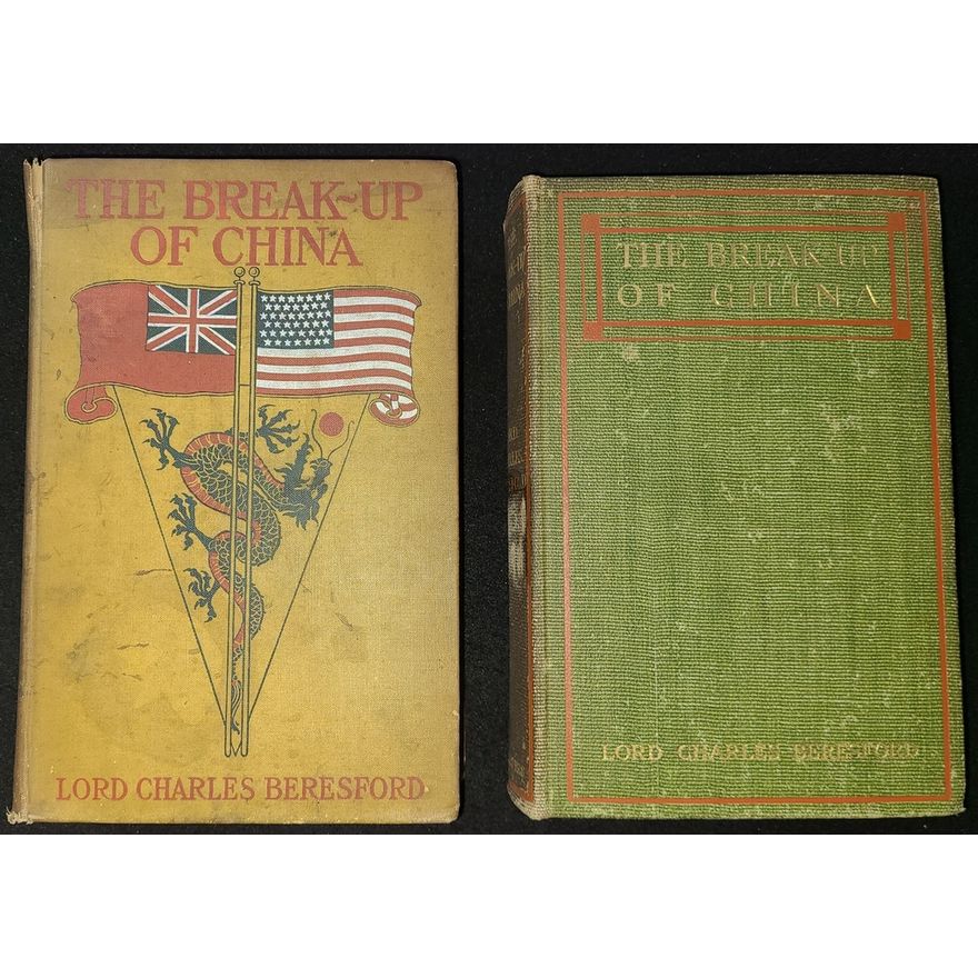 1899年初版及1900年再版 "The Break-Up of China" 精裝本各一册, 各附有摺入中國地圖两面, 著者是Lord Charles Beresford, 两個版本都是由Harpr & Brothers Publishers 出版. 內文為英文.