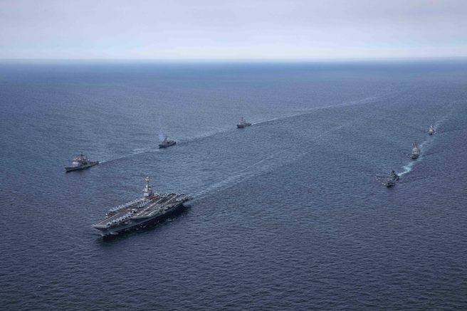 .美國海軍航空母艦福特號目前滯留委瑞內拉外海隨心所欲的要攻打該國.