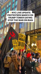在紐約,示威者高舉黃色反戰標語及諷刺川普與尼坦雅胡的圖像,於曼哈頓聯合廣場(Union Square)聚集高喊口號;反戰的猶太團體也到場聲援。
