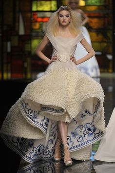 在Dior的期間他玩遍各種造型和橋段,從埃及的娜芙蒂蒂到中國日本味道濃厚的古典前味融合,無一場不風花雪月,每件禮服如花朵開到荼靡,炫目的美直射眾人眼睛。