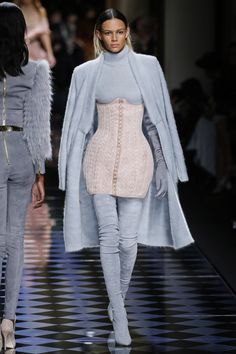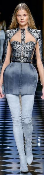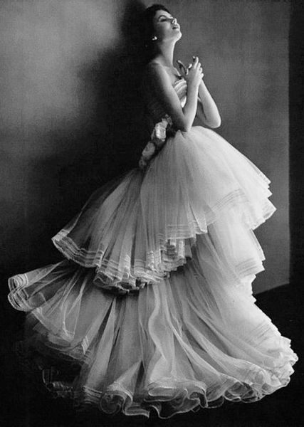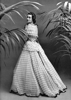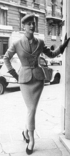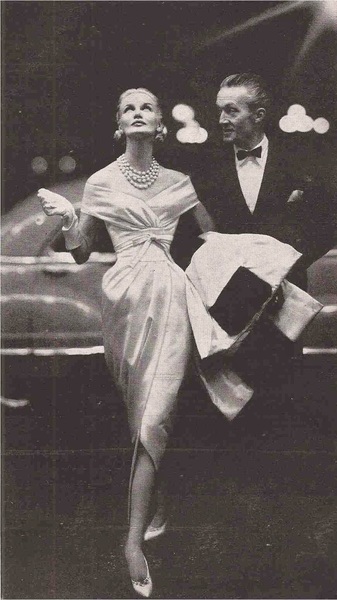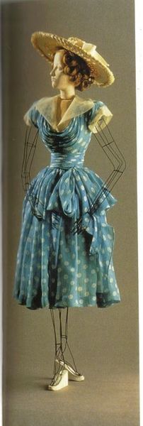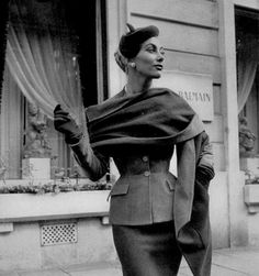 另一位設計師Pierre Balmain乍看之下與Dior很相像,若拆解觀察則會發現窄腰西裝外套的開襟下擺是分開的,且Pierre Balmain偏愛鈴鐺狀的禮服下身,還有禮服肩部的披掛托擺款式。