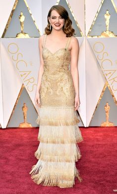 艾瑪史東身著Givenchy出席今年奧斯卡。充滿1920復古味很適合她,