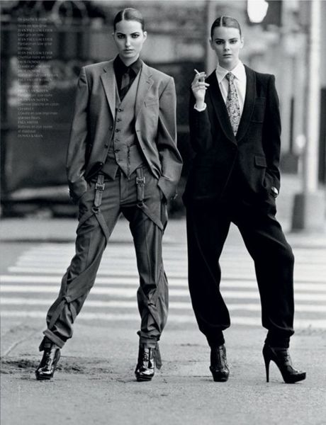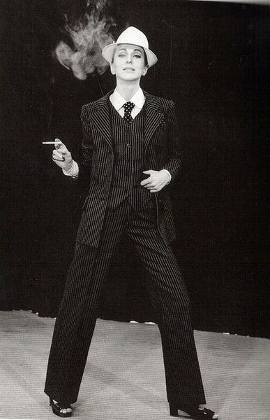 然而一開始,這樣的美感無法被社會接受,女星Nan Kempner穿著西裝到紐約餐廳還被擋了下來,她將西裝褲脫了、西裝外套綁成迷你裙才得以進入用餐。在當時女性穿褲裝拋頭露面,就跟穿著泳衣在大眾場合一樣無禮。舊式的觀念仍檔不住世代的滾動,不少前衛女性帶著時尚走向新風貌,世界對中性的美,更能接受。