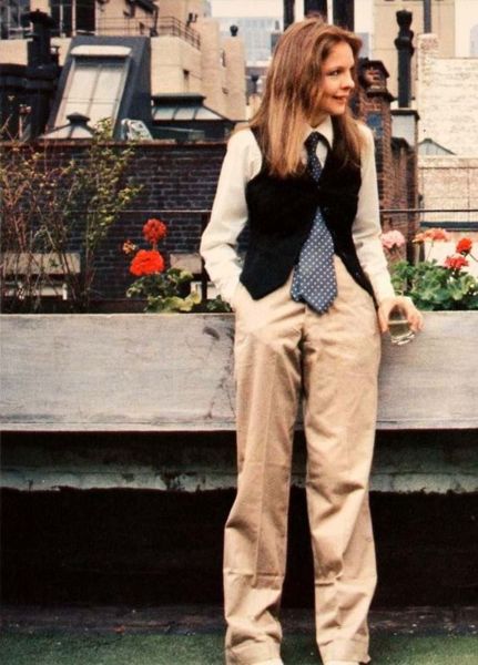 說到吸菸裝,我會聯想到Woody Allen 1977年電影< Annie Hall>裡的經典影像。飾演女主角的Diane Keaton幾乎是拿自己衣櫃裡的衣服替角色裝扮。
