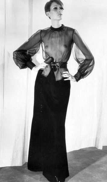 YSL大幅度的女性自主浪潮除了西裝,他還是透視裝的始祖。現在許多解放乳房遊行還會被保守人士嗤之以鼻,看到T台上有模特兒露點我們還會傻眼、難為情,早在1968年這早已不足為奇。