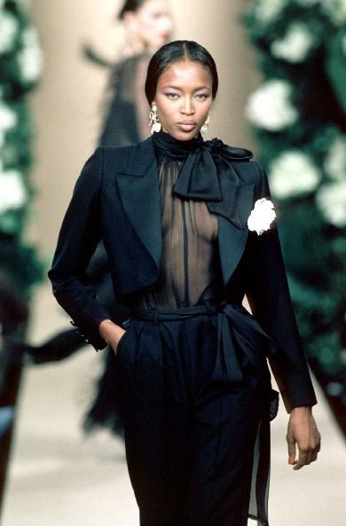 吸菸裝,原指上流社會晚宴中,男人脫下正式燕尾服的黑色便裝。YSL取材19世紀男士西裝外套的外型,合身的剪裁與絲綢襯衫,女人從此能像男人們一樣用餐後到吸菸室,不再是被排除在社交圈之外的花瓶,多了一份陽剛的美。