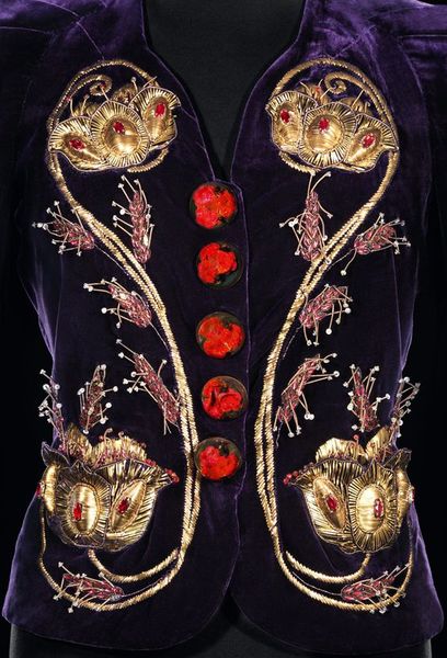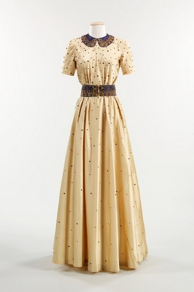 由House of Lesage負責製作的「魚子醬珠寶」點綴滿深藍色天鵝絨,像夜空中的滿天星斗,穿插金色銀色的星球與十二星座符號刺繡。 這件外套2013年12月3日在英國專門拍賣骨董名牌服飾的Kerry Taylor Auctions以英鎊136,400.00售出。