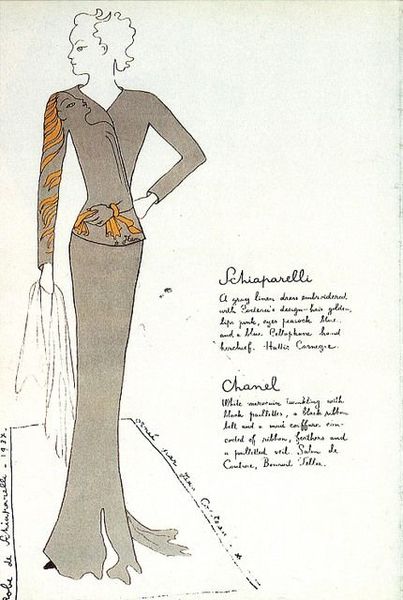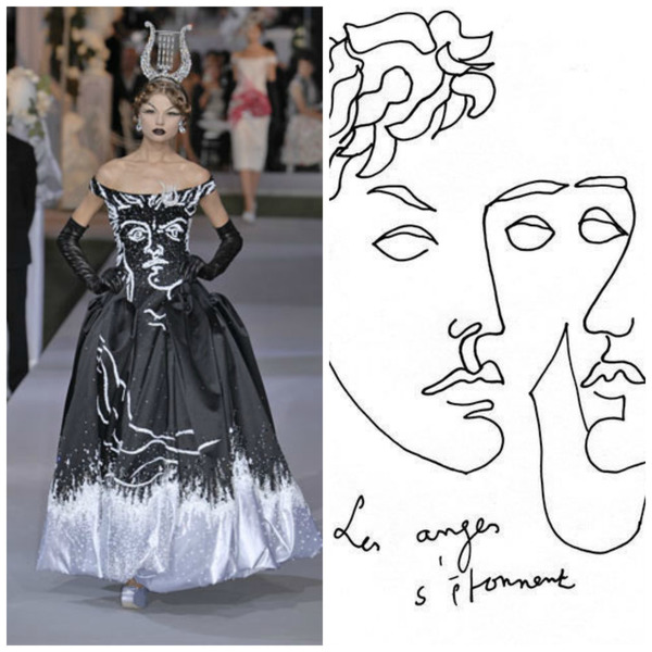 Schiaparelli把Jean Cocteau的畫作以她的刺繡風格在1937年的秋冬系列中呈現。