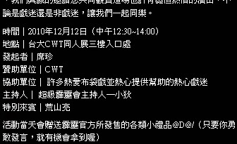 (活動宣傳)魔焰-201012月12日CWT 布袋戲COS表演