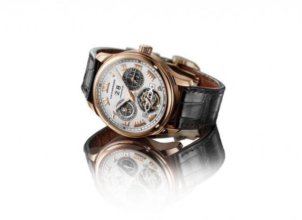陀飛輪與萬年曆共存於洗練的設計風格中,萬年曆顯示清晰而完整。