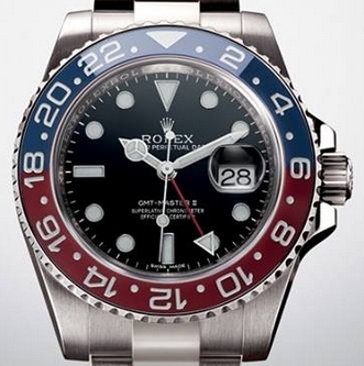 2014 Basel 勞力士最新款式 GMT Master II 116719 勞力士在Oyster Perpetual GMT-Master II腕錶上配置紅藍雙色Cerachrom字圈,此設計與1955年問世的第一款GMT-Master的外圈遙相呼應。此字圈更同時體現出兩大成果,首先,製作紅色陶質字圈難度極高,因此紅色在陶瓷上甚為罕見;完成紅色部分後,接下來便要修改每個顆粒的化學成分,由裡到外,使半邊字圈由紅色變為藍色,同時更要確保兩種顏色對比分明。