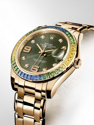 ▲ 勞力士Oyster Perpetual Datejust Pearlmaster的新款腕錶展現出黃金與彩色寶石的璀燦魅力