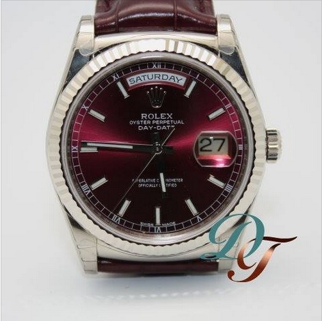 如果您是個喜愛經典,卻又有點喜歡與眾不同的人,那您可以考慮ROLEX這款118139 ,18K白金錶殼與鱷魚皮錶帶,融合紫色面盤與紫色錶帶,鮮豔獨特魅力的時尚色彩,想不搶眼也難喔!!!