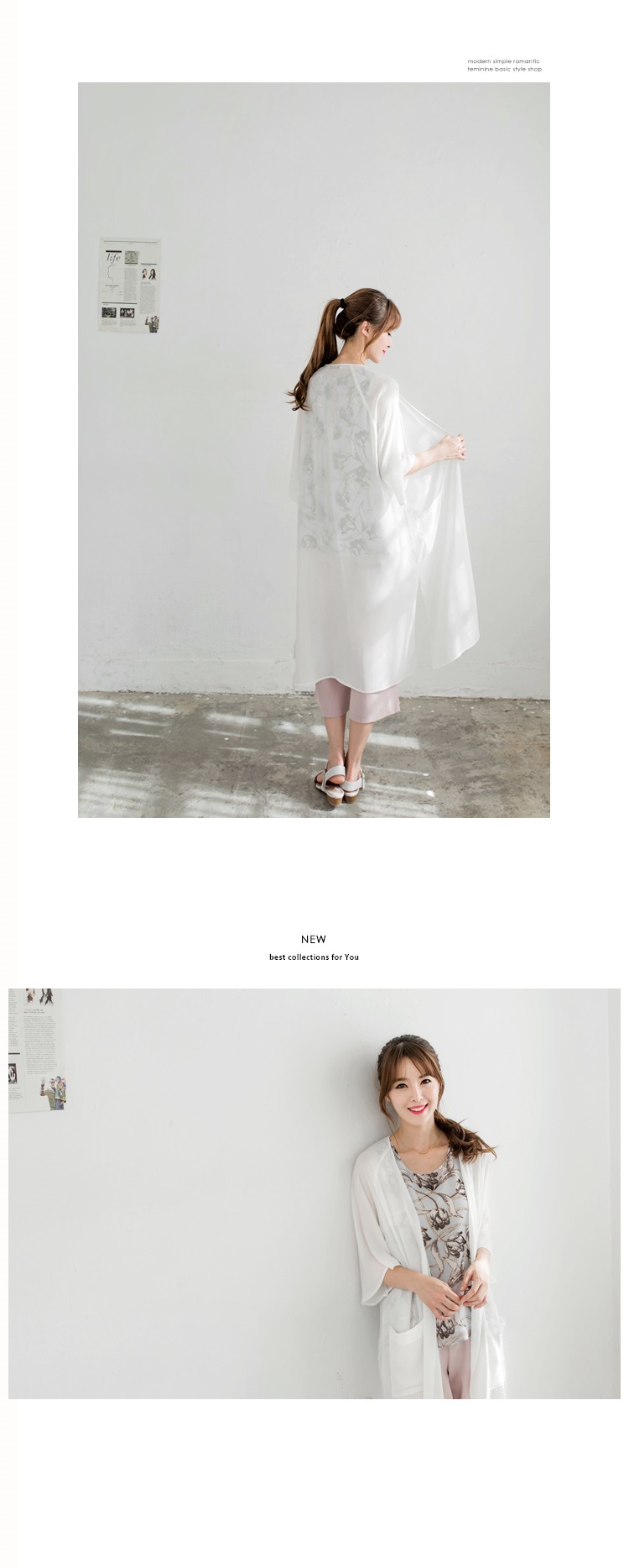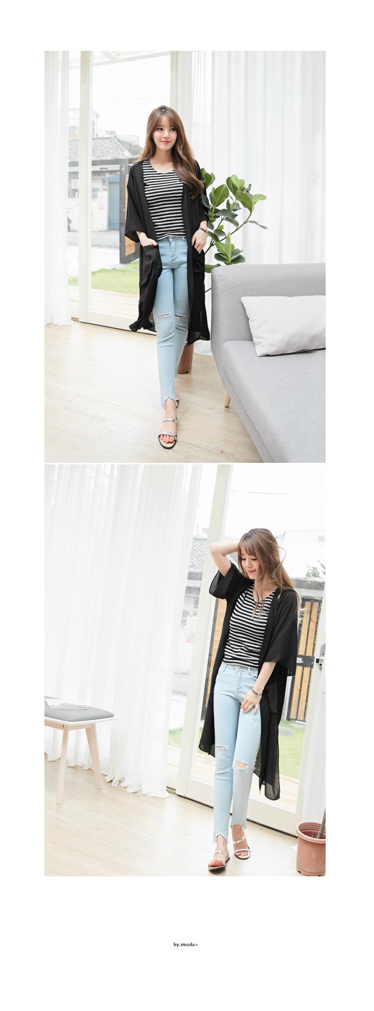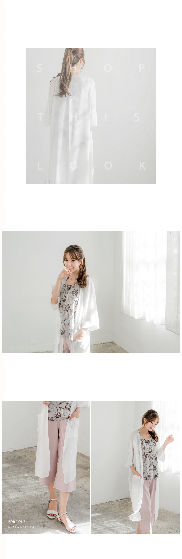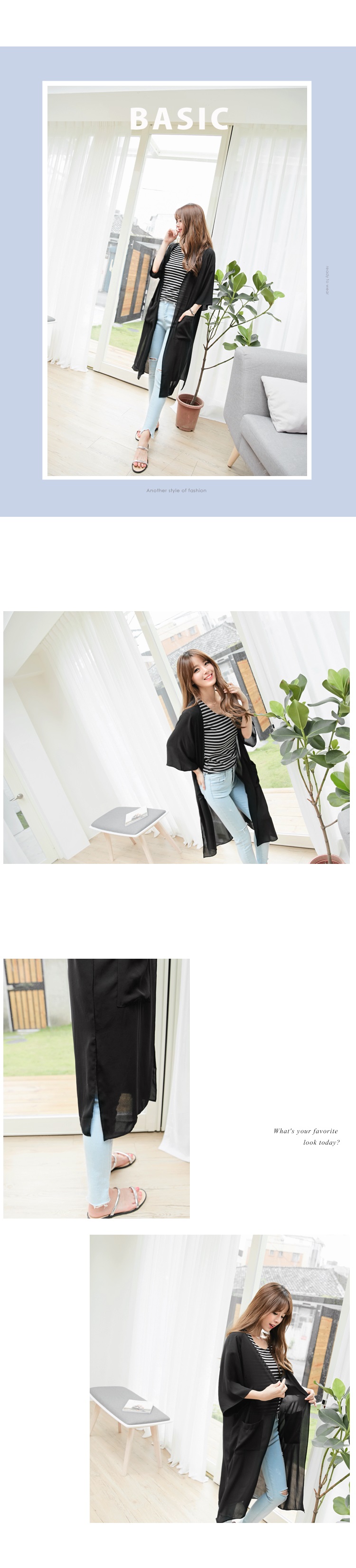 [2017女生穿搭推薦] 2017OB嚴選春夏熱銷排行榜推薦【春夏斷碼-2件55折】素色雪紡透膚七分袖長版開襟罩衫-外套.2色
