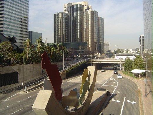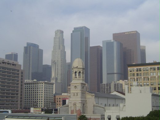 圖三:L.A.的downtown摩天樓群,略呈圓柱狀的就是Library