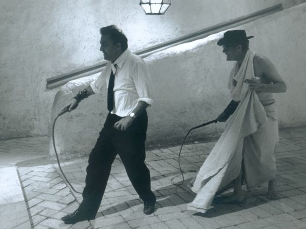 《8又2分之1》劇照,費里尼正在指導男主角馬斯楚安尼如何走位