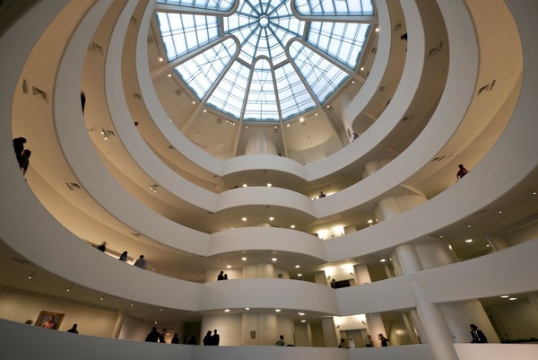 美國建築大師萊特,位於紐約的「古根漢美術館」,外觀像個白色大蝸牛。