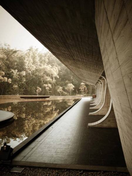 清水模的脾性,天生孤傲、耍冷,不太適合走群眾路線,中小型建築可能更適合它的戲路,個人私以為,從安藤忠雄的作品脈絡便能得到印證。大師早期的私人住宅、教堂建築相當有靈性,後期的作品因量體太大(例如淡路夢舞台),詩學的張力反而削弱了,因為清水模這種素材,向來就不是喧囂的,它的留白該用光影來寫詩,該讓人聽著蕭邦靜靜品味寂寞的,因此那種儀式性的精工禪,一點一點糢糊了。