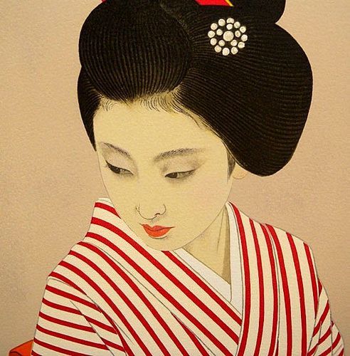 喔,忘了一提!三島由紀夫這本《春雪》文字極有美感,雖說日語本身的曖昧複雜性很難被他國語言翻譯出來,但「星光出版社」的譯本算是流暢的,相較之下,谷崎潤一郎《細雪》「聯合文學」的譯本細細瑣瑣、平鋪直敘看得我好煩膩,上下兩卷好像永遠讀不完似的(可知谷崎大師的文采可是一等一的綺麗哪)。若有得罪出版業之處請海涵,本人是以讀者心情實話實說。另外,這張仕女圖是日本畫家Shimura Tatsumi志村立美(1907-1980)的作品,畫中的女子真的好美,好像我心目中三島《春雪》中的女主角綾倉聰子,你們說是不是?