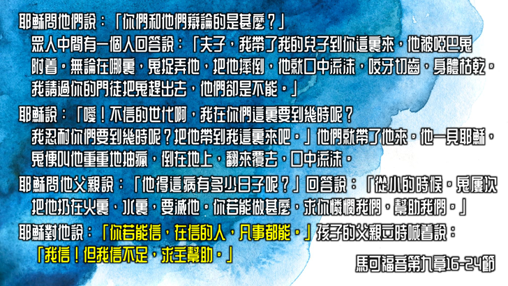 Translator 14 耶穌到了門徒那裏,看見有許多人圍着他們,又有文士和他們辯論。 15 眾人一見耶穌,都甚希奇,就跑上去問他的安。 16 耶穌問他們說:「你們和他們辯論的是...
