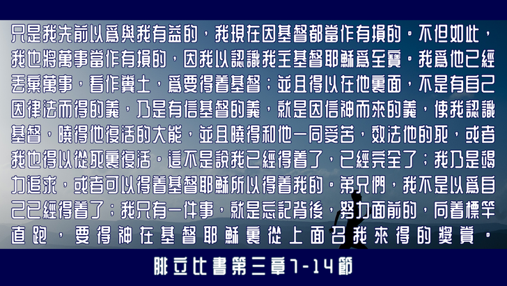 Translator 7 只是我先前以為與我有益的,我現在因基督都當作有損的。 8 不但如此,我也將萬事當作有損的,因我以認識我主基督耶穌為至寶。我為他已經丟棄萬事,看作糞土,為...