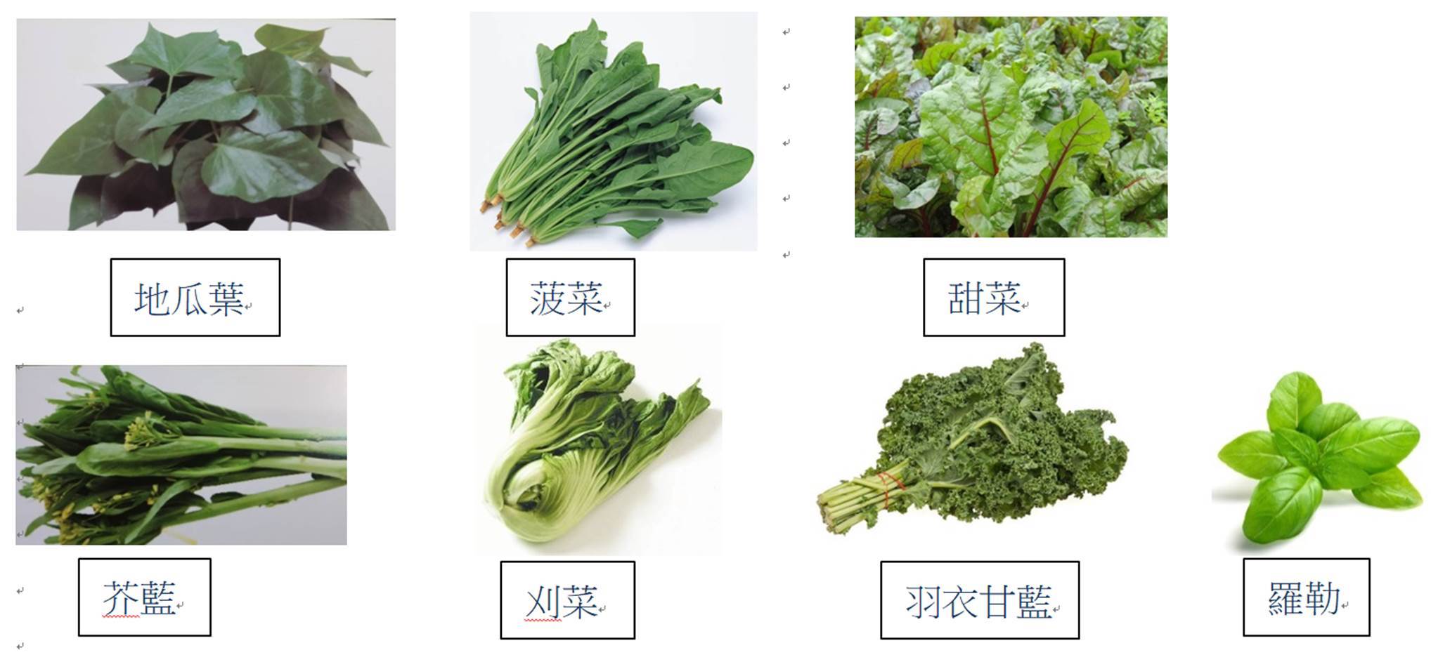 地瓜葉11.5毫克 >菠菜11.3毫克 >甜菜11毫克 >芥藍10.9毫克 >刈菜9.9毫克 >羽衣甘藍6.2毫克 >新鮮羅勒5.7毫克 >苦瓜2.6毫克 >豌豆2.6毫克 >南瓜2.3毫克 >蛋黃1.1毫克