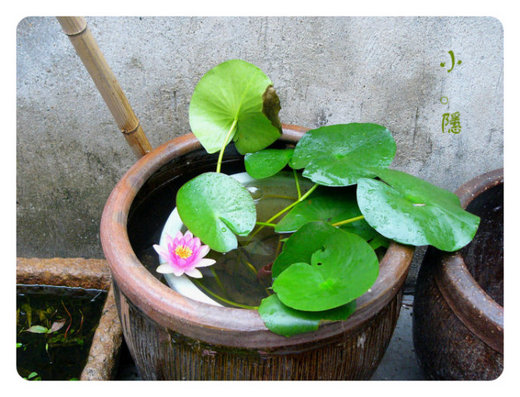 花瓣枝葉都滴著水珠,荷葉洗過一樣的清爽,悄悄地一支粉蓮綻出,一絲不染。