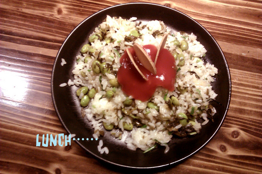 主食毛豆子炒飯,蕃茄醬加山楂片,有型又開胃!