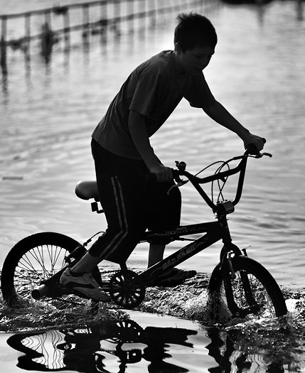小五的鄰居-霸丸哥哥,與弟弟芭樂,還有霸丸哥哥的同學煙強打著赤膊,吆喝著滷蛋一起去溪水玩水。霸丸哥哥的同學煙強還抱著一個黑色內胎灌飽的大游泳圈,坐在霸丸哥哥的車子後座。弟弟芭樂因為沒有腳踏車,要滷蛋也出動他的『旋風一號』湊車一道去。