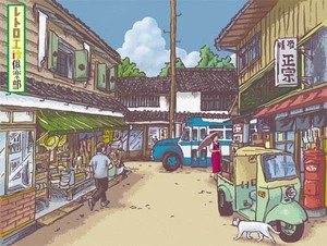 他仍把那條手帕斜斜地綁在頭上,戴著斗笠,一身工作人的模樣,忍著兩腿痠累的苦楚,一路走來,感受的變化,一如記憶的顏色,逐漸慢慢變得鮮明....。