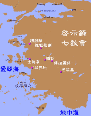 啟示錄的七教會在小亞細亞排列成北斗七星的形狀,象徵天上的金燈台。
